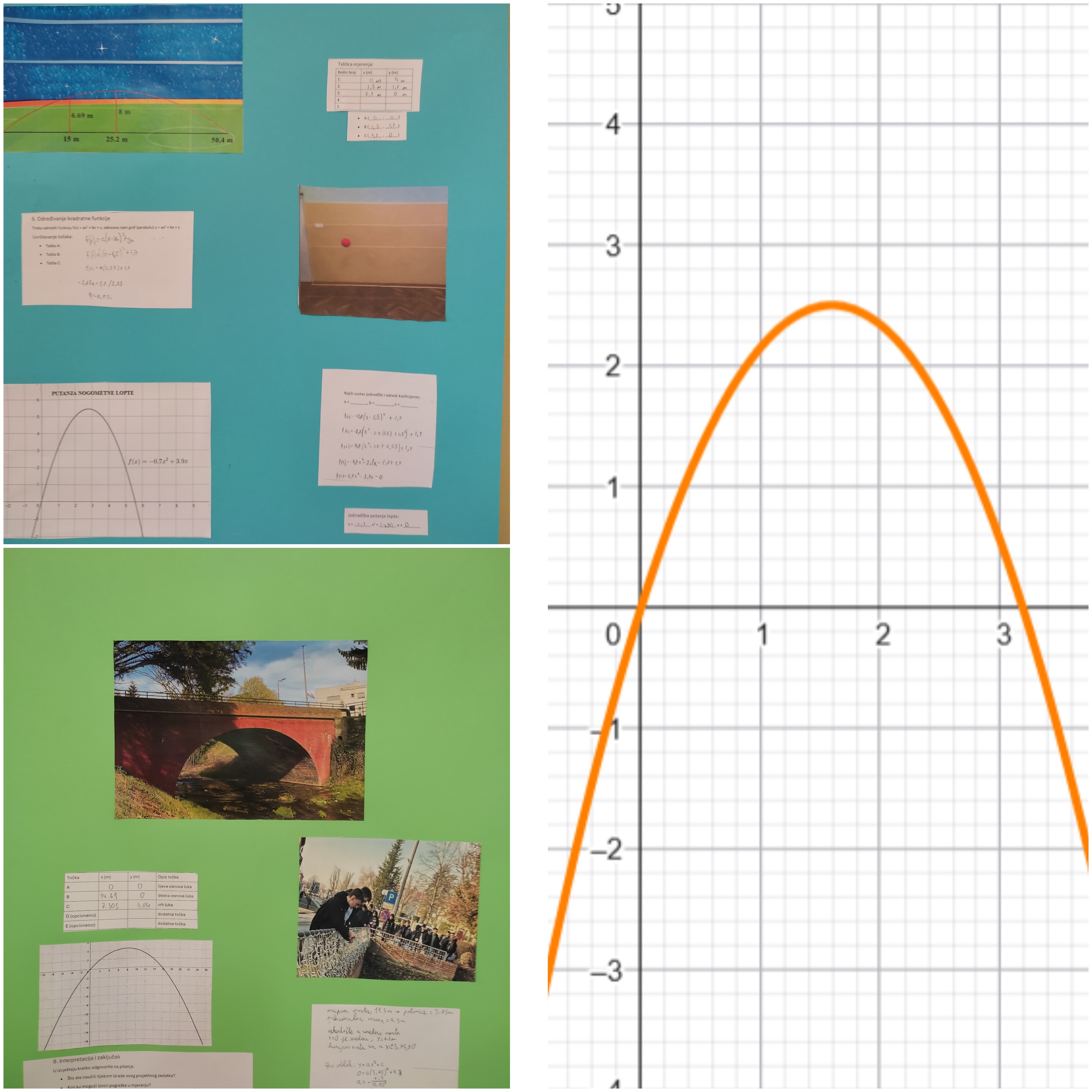 Učenici drugih razrednih odjela modelirali su kvadratnom funkcijom. 2.A je proučavao putanju nogometne lopte, a 2.F, opisivao luk starog mosta u Kutini.